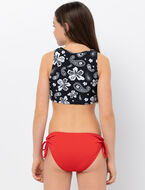 Ce maillot 2 pièces imprimé accompagne les ados actives avec confort. Le haut à nouer ajoute une touche tendance, tandis que le tissu avec protection SPF 50 aide à protéger la peau lors des journées à la plage ou à la piscine.