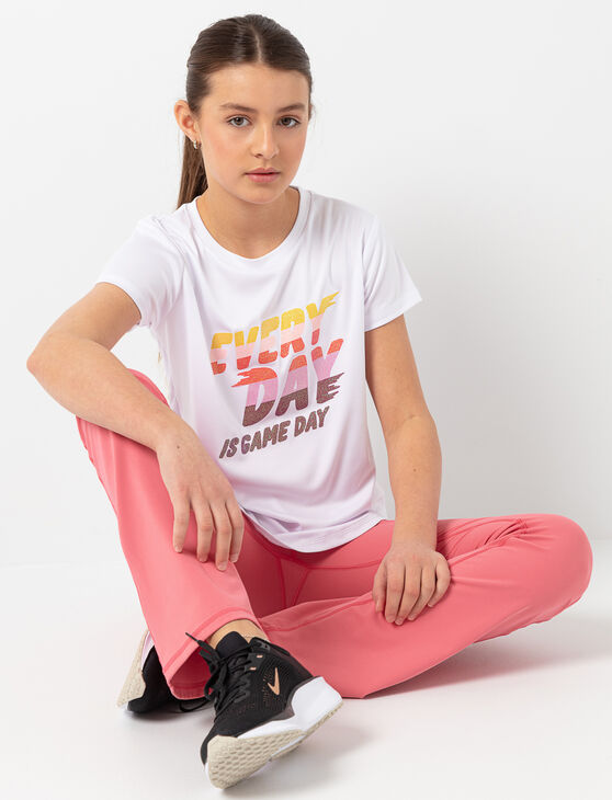 Pensé pour bouger avec assurance! Ce t-shirt sportif accompagnera chaque effort, chaque éclat de rire et chaque instant actif. Léger et respirant, il est idéal pour une énergie sans limite!