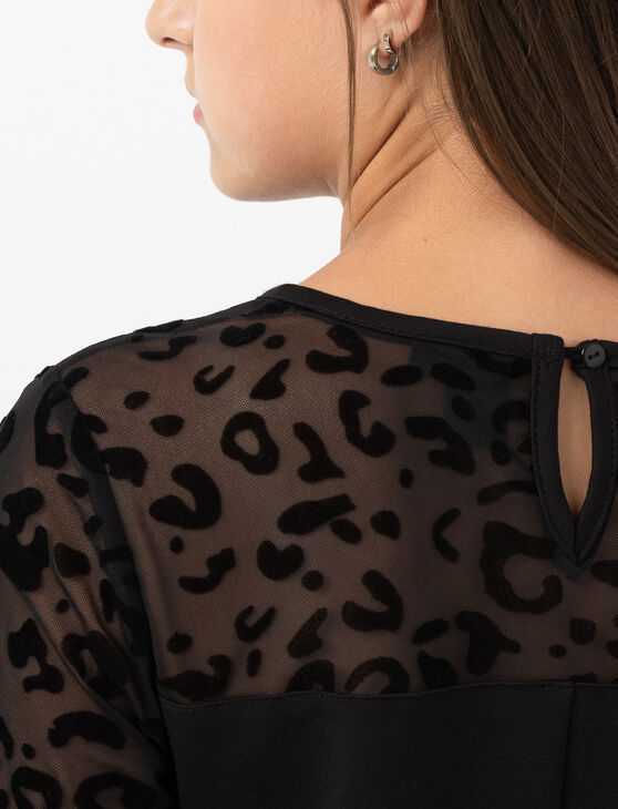 Apportez une touche sauvage au style de votre ado avec cette robe ajustée aux manches léopard transparentes, idéale pour briller aux sorties spéciales.
