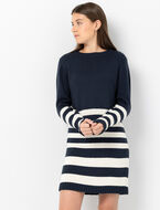 Robe longue en tricot à rayures, parfaite pour garder votre fille bien au chaud avec style. Son col rond et ses poignets côtelés ajoutent une touche classique à ce modèle confortable et tendance.