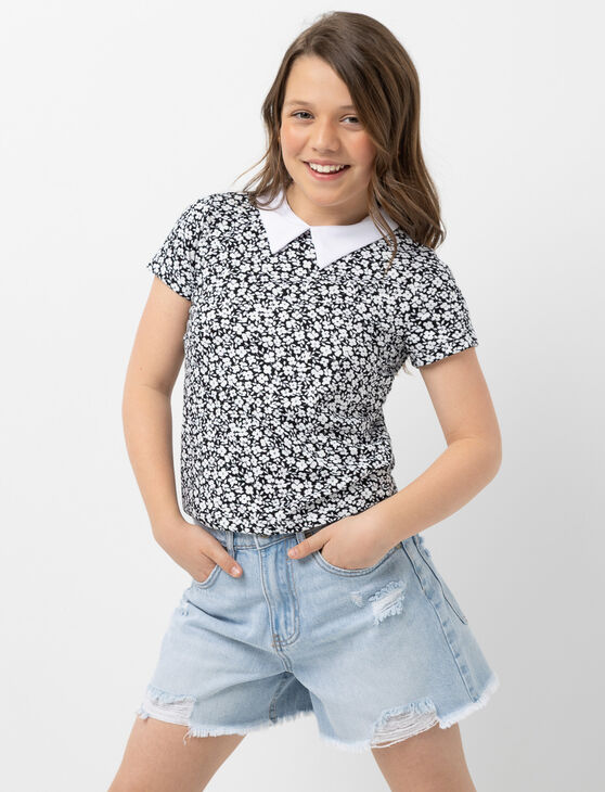 Avec son col imprimé et sa coupe simple, ce haut est prêt à rejoindre toutes les tenues préférées de ton ado.