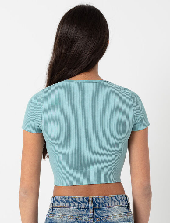 Ce t-shirt court est un incontournable pour des looks décontractés et tendance. Avec sa texture côtelée et sa coupe flatteuse, il s’associe parfaitement à des jeans ou jupes taille haute.