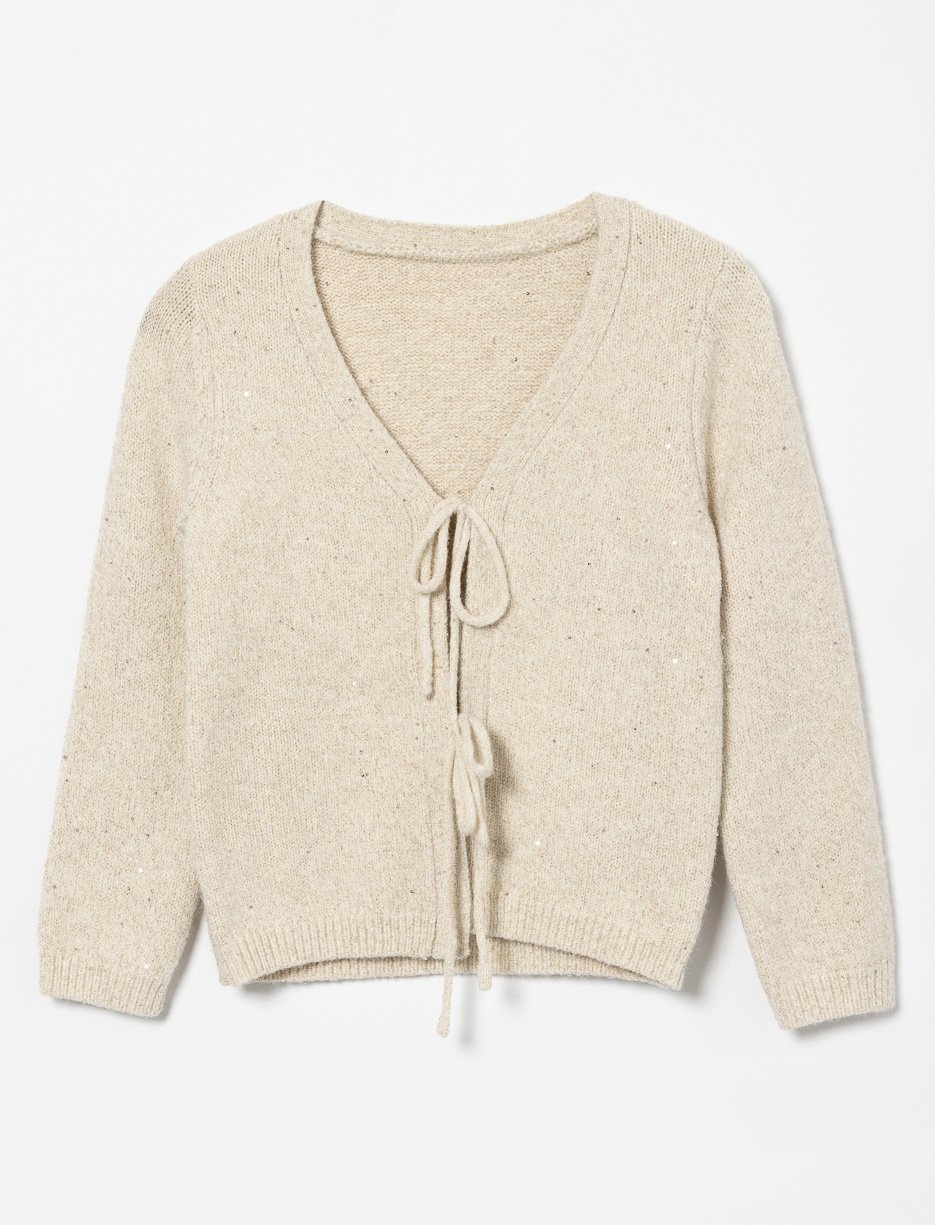 Cardigan en tricot scintillant à nœuds - petite fille