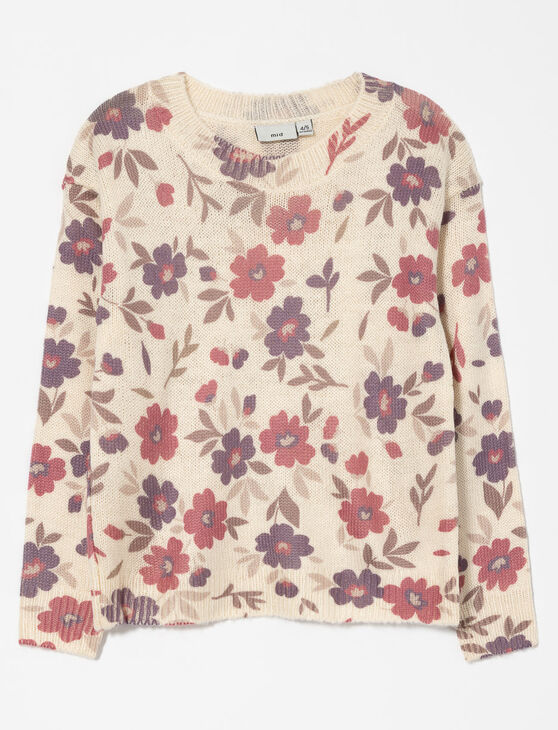 Un chandail en tricot qui met des fleurs dans son quotidien, alliant douceur et style pour accompagner votre petite fille partout.