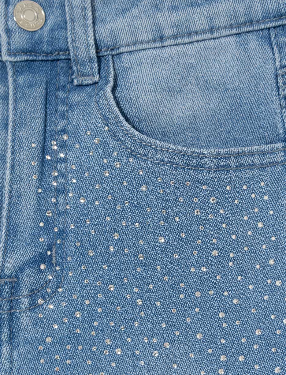 Un jean jambe large orné de strass scintillants, idéal pour les journées lumineuses ou les occasions spéciales. Confortable et plein d’éclat pour un style joyeux.