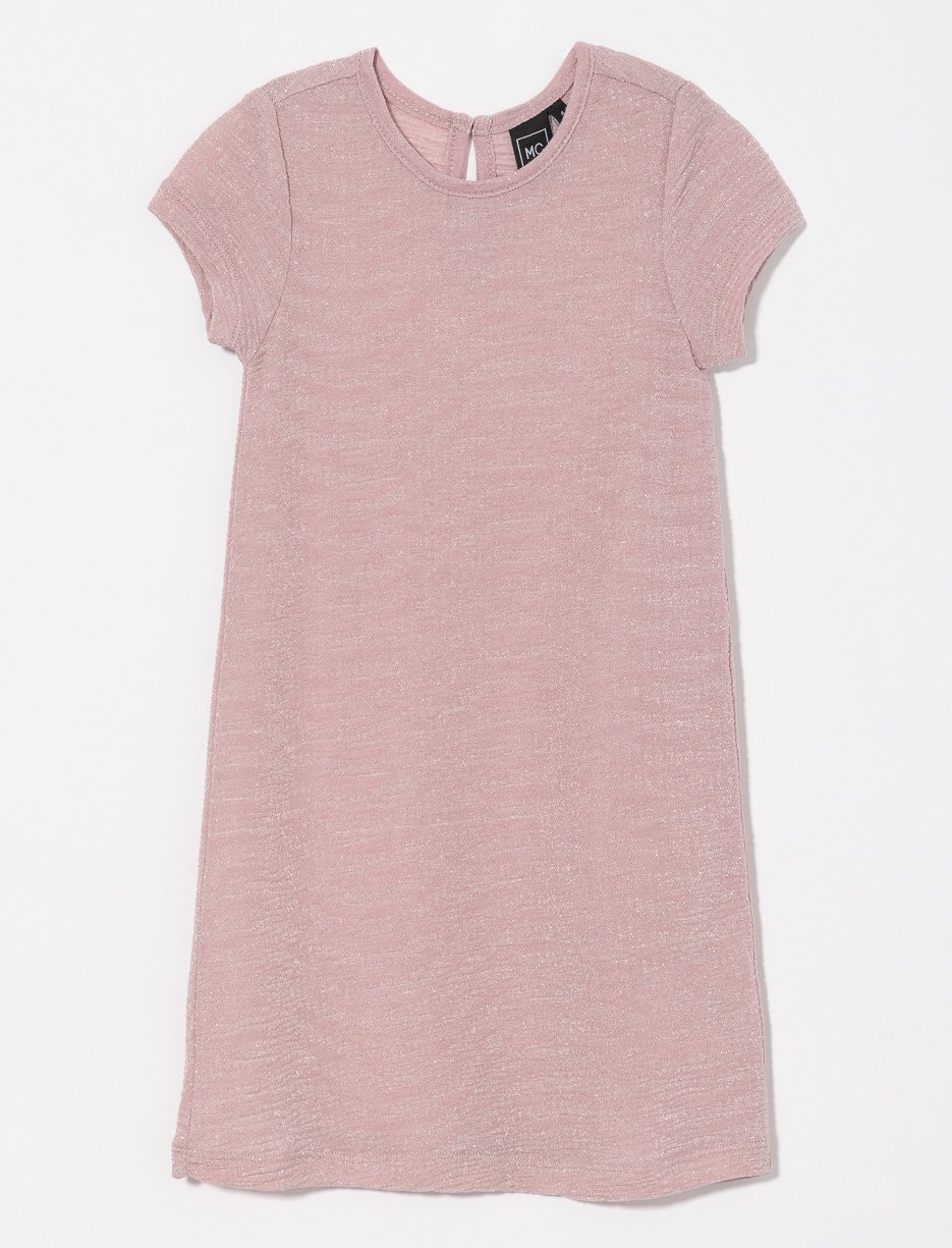 Arborant une texture scintillante et une coupe simple, cette robe à manches courtes est idéale pour les tout-petits qui adorent le confort avec une touche d’éclat.