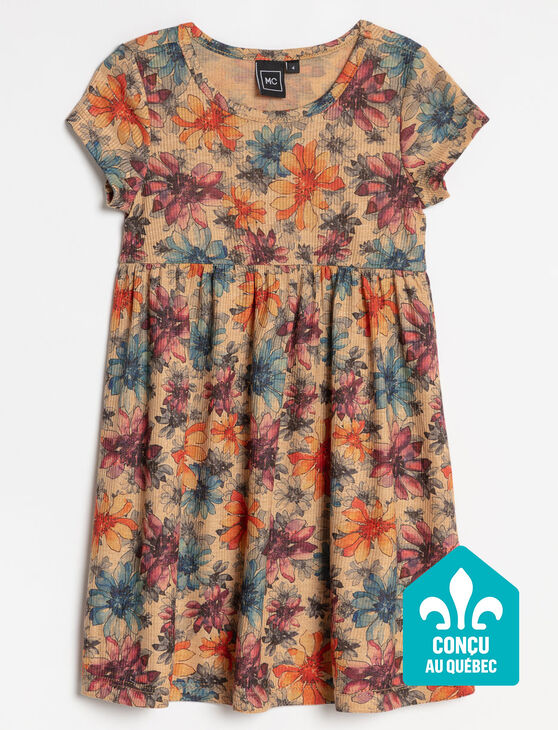 Un éclat de couleurs et de gaieté! Cette robe fleurie est idéale pour les petites qui adorent tournoyer. Son tissu côtelé apporte une jolie texture, tandis que sa coupe fluide assure un confort absolu.
