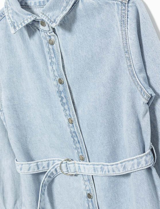 Robe en denim boutonnée à col chemisier - petite fille