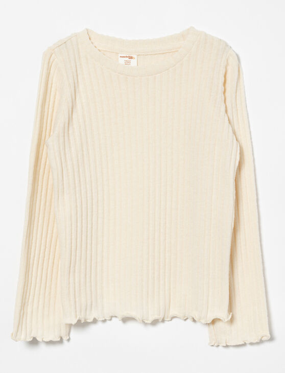 Doté d'un col rond et d'une finition laitue aux manches et au bas, ce t-shirt à manches longues pour petite fille est un essentiel confortable qui allie style et simplicité.
