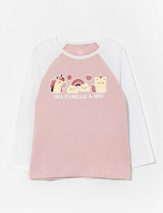 Un t-shirt plein de tendresse avec manches contrastantes et imprimé adorable, parfait pour ses journées remplies de douceur.