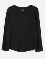 Ajoutez une touche polyvalente à la garde-robe de votre enfant avec ce t-shirt noir à manches longues, doux et confortable. Idéal à porter seul ou superposé selon la saison.