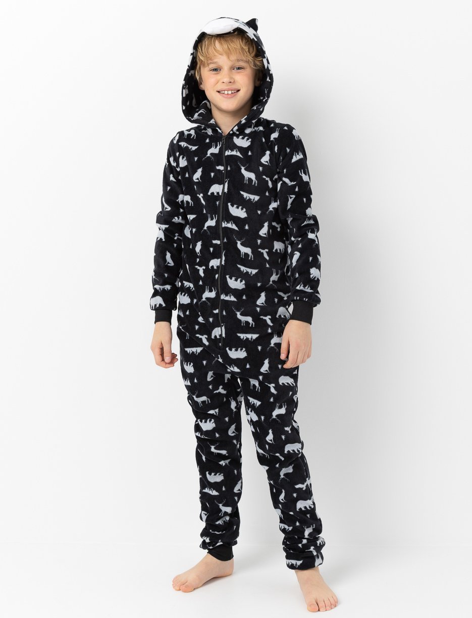 Ce pyjama une pièce à capuchon loup promet des nuits bien au chaud et pleines de style! Son tissu doux et son imprimé original en font le compagnon parfait pour se détendre à la maison.