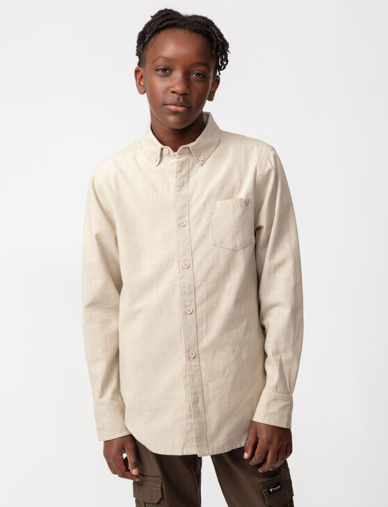 Cette chemise boutonnée classique offre un look intemporel grâce à son tissu à effet lin et sa coupe décontractée. Idéale pour les occasions décontractées ou plus habillées, elle s'associe facilement à toute tenue.