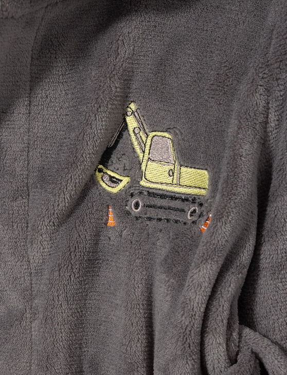 Une robe de chambre en peluche douce et chaude, avec capuchon, ceinture et poches pratiques, idéale pour envelopper votre garçon de confort.