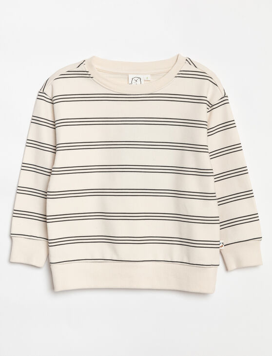 Rayures au programme pour les explorateurs en herbe! Un chandail doux et pratique pour accompagner toutes ses aventures.