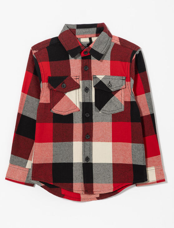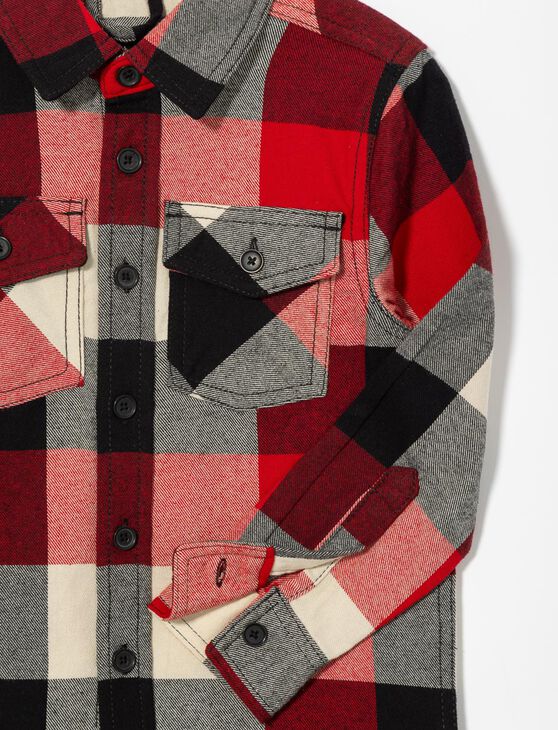 Chemise en flanelle pour petit garçon, à manches longues et col chemisier. Dotée de deux poches avant et d’une fermeture à boutons, elle allie confort et style au quotidien.
