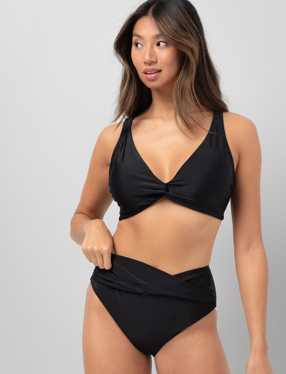 Ce haut de bikini offre un décolleté en V flatteur et un twist au buste qui met la silhouette en valeur. Conçu pour les bonnets D, il assure maintien et confort, parfait pour profiter des journées ensoleillées avec assurance.