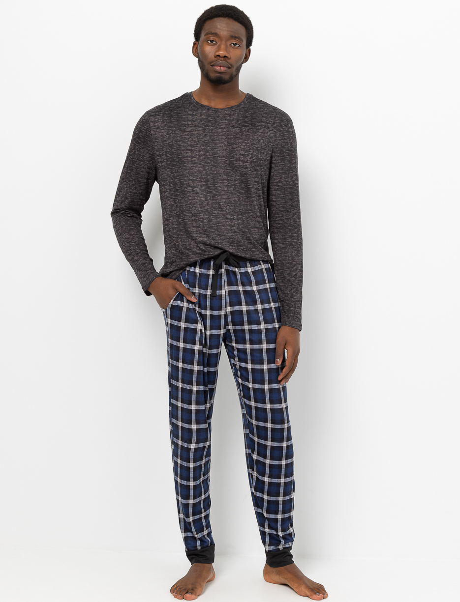 Un essentiel détente avec son haut uni à poche pratique et son pantalon à carreaux doté d’un cordon ajustable pour plus de confort.