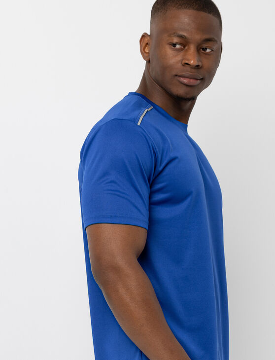 Conçu avec des bandes réfléchissantes, ce t-shirt de sport uni à col rond pour homme allie confort et sécurité pour vos activités extérieures.