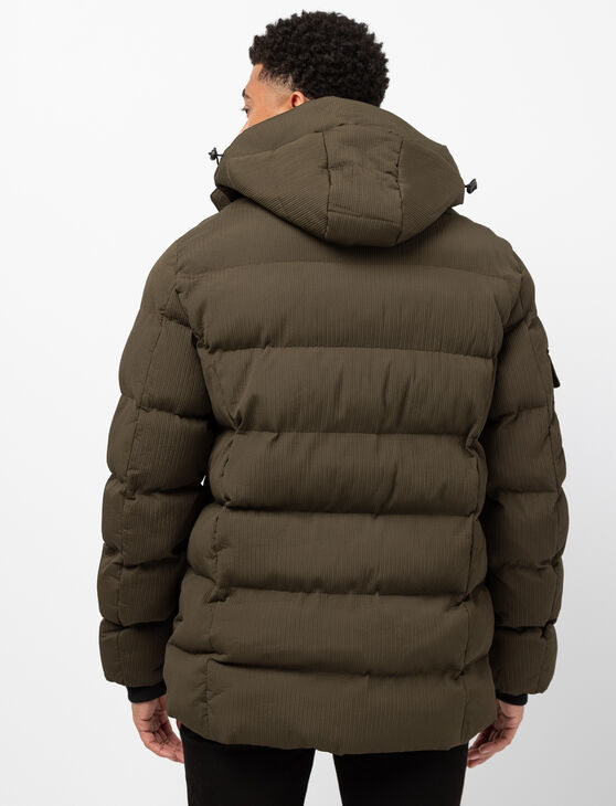 Affrontez le froid sans compromis. Ce manteau matelassé rayé combine confort, chaleur et allure moderne pour toutes vos sorties hivernales.