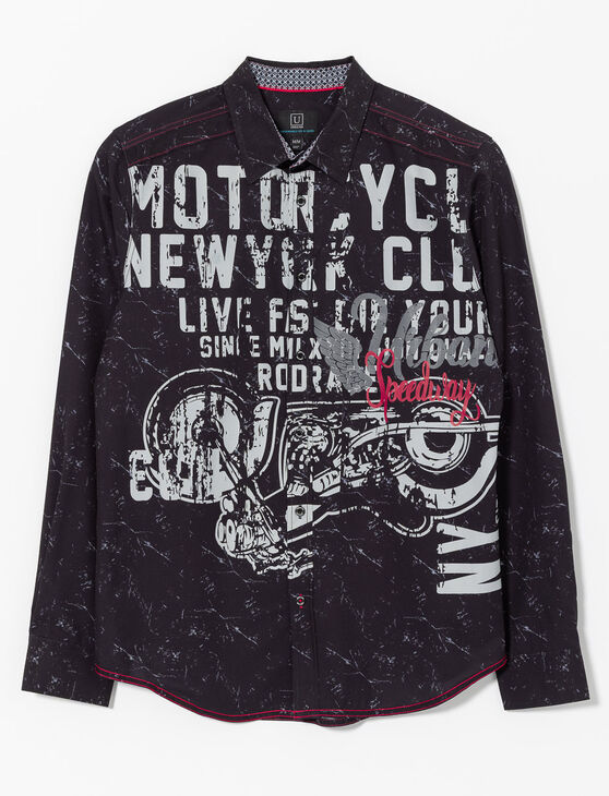 Une chemise audacieuse au look urbain, ornée d’un imprimé inspiré de la route. Parfaite pour ajouter du caractère aux tenues du quotidien.