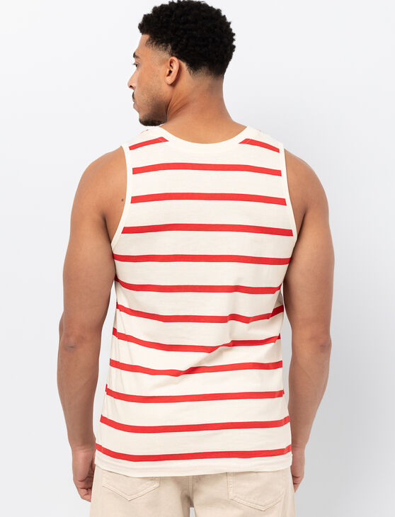Rayures pleines de mouvement et imprimé marin à la poitrine donnent à cette camisole un air de départ en vacances. Un style facile qui rappelle le large et ajoute une touche ensoleillée, même sans quitter la maison.