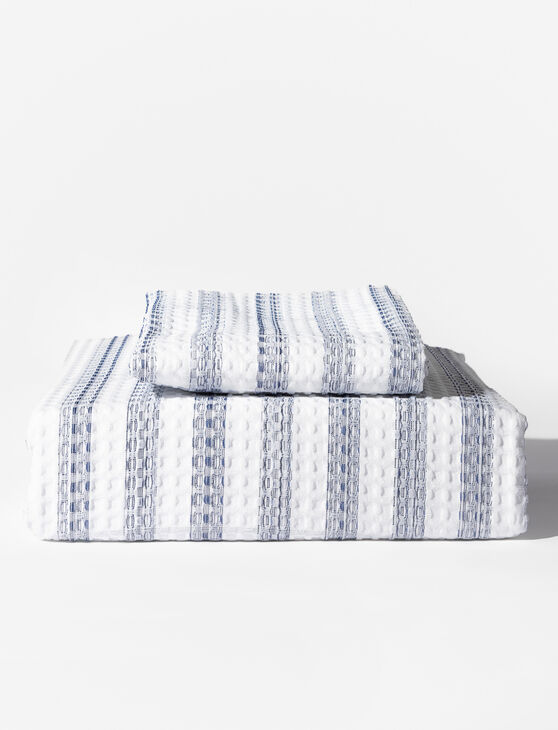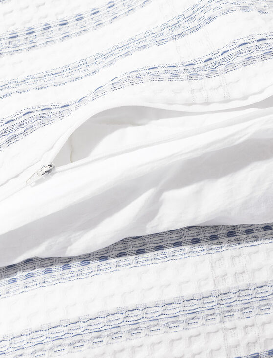 Ensemble simple comprenant une housse de couette et une taie d’oreiller. Son motif à rayures gaufrées apporte une touche moderne et subtile à la chambre. Confortable, léger et facile d’entretien. Dimensions : 66 x 90 po.