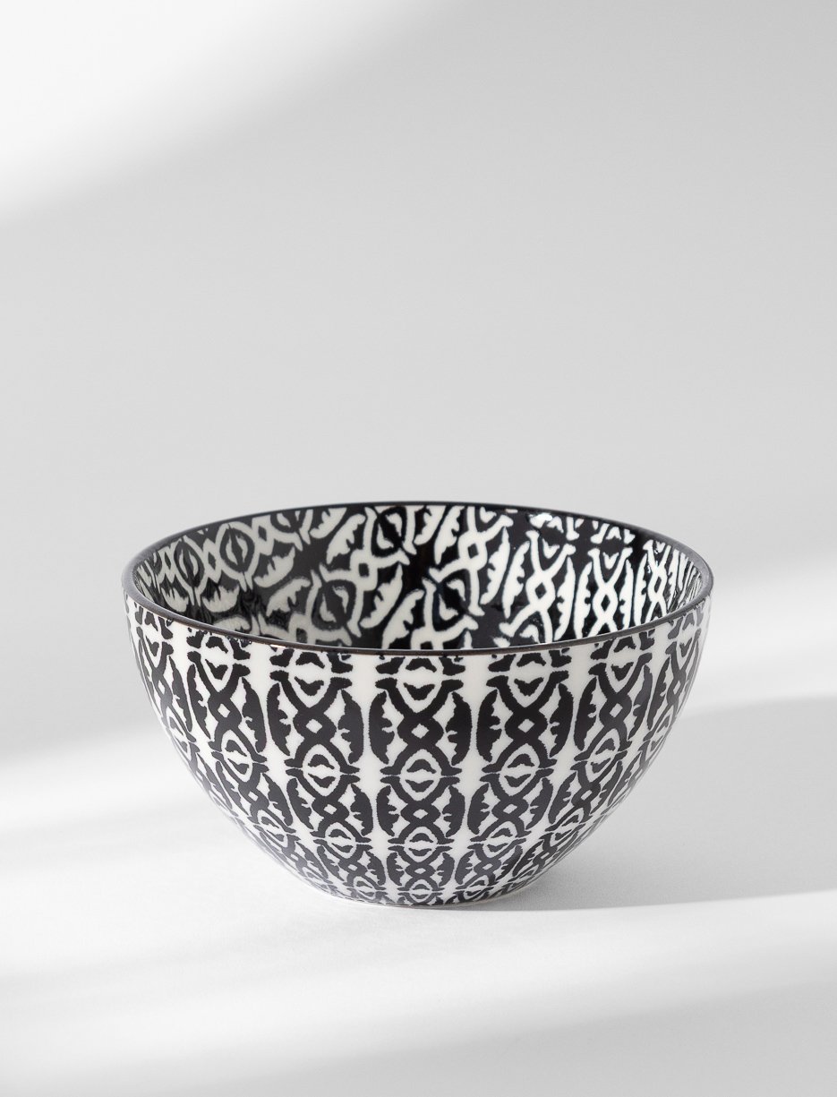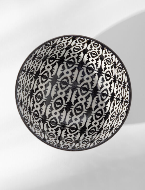 Ajoutez du style à votre table avec ce bol rond en grès, parfait pour les trempettes, condiments ou sauces. Motifs noirs et blancs, va au micro-ondes et au lave-vaisselle. 10 cm / 200 ml (4" / 7 oz)."