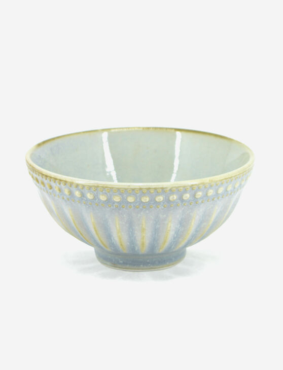 Bol en grès lustré au fini brillant et au motif dentelle raffiné. Chaque pièce est unique grâce à un procédé de cuisson spécial de l’émail. Va au lave-vaisselle. Diamètre : 12 cm (4,75 po).