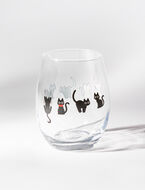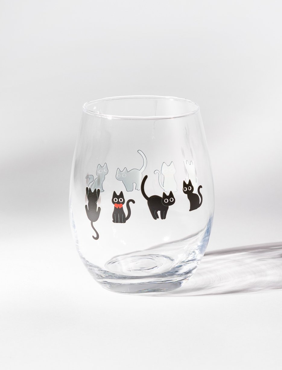 Ce verre à vin sans pied apporte une touche amusante grâce à son imprimé chats. Parfait pour vos boissons du quotidien. Dimensions : 7,5 × 12,5 cm.