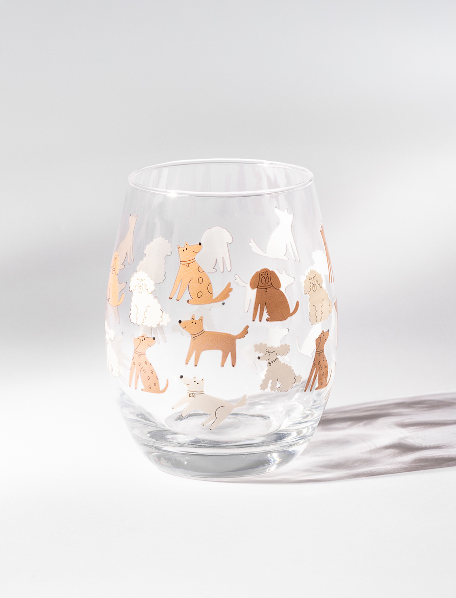 Verre à vin sans pied imprimé chiens, parfait pour les amoureux des toutous. Dimensions : 7,5 x 12,5 cm.