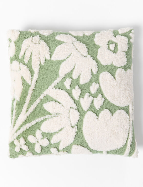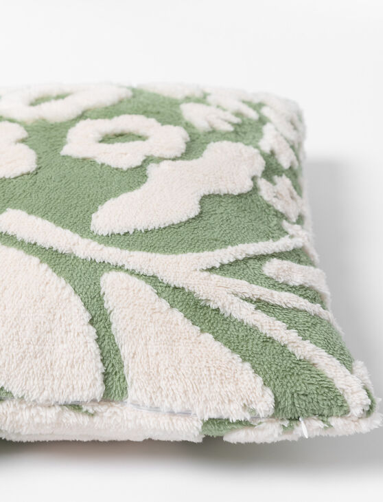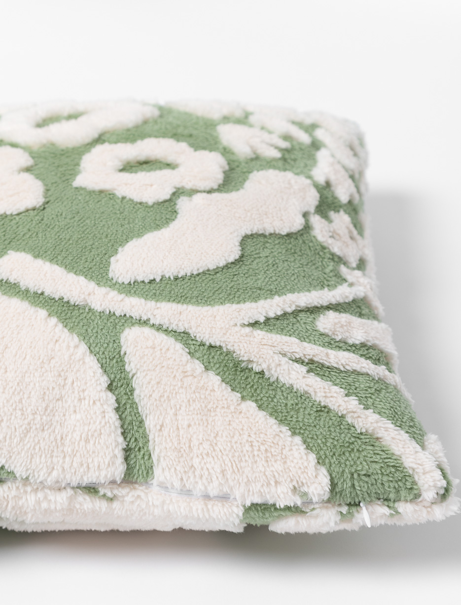Coussin jacquard sherpa à motif feuillage