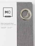Ajoutez une touche chaleureuse à votre décor avec ce panneau coupe-lumière texturé. Son tissu bloque la lumière tout en offrant un joli relief, et les œillets en argent mat facilitent l’installation. Dimensions : 54 x 84 po.