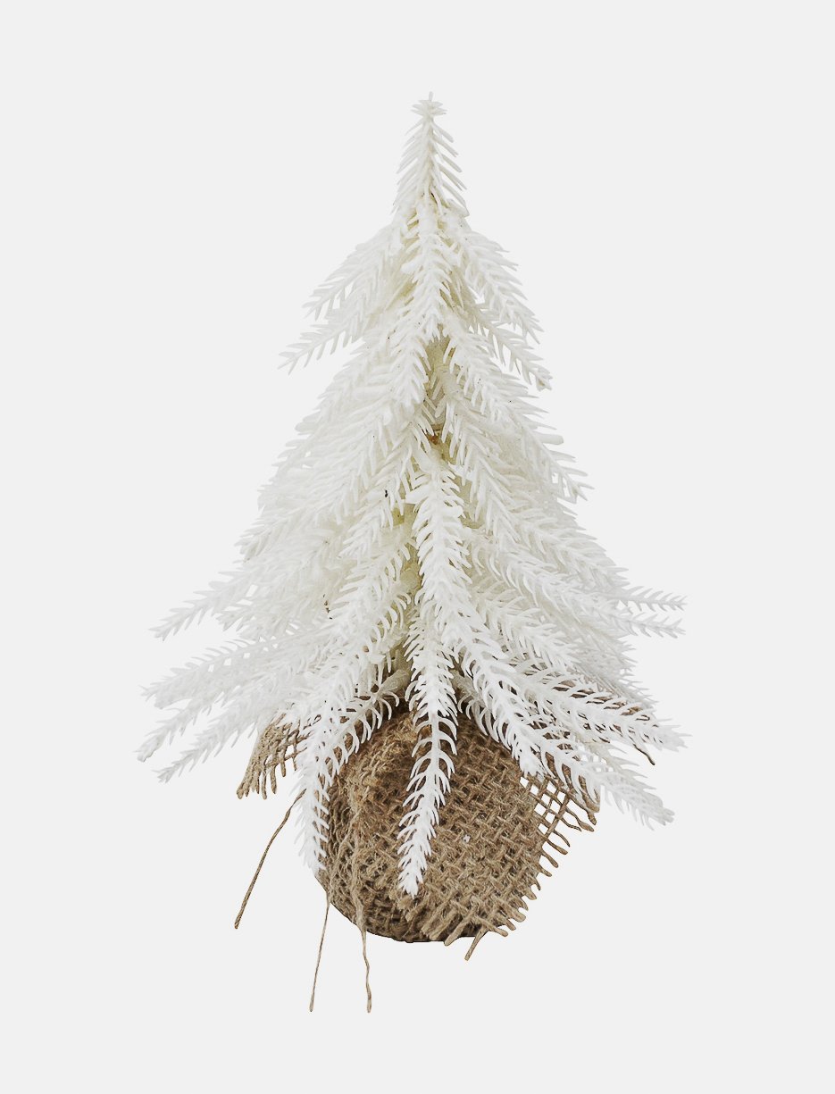 Ce mini sapin blanc à base en jute est parfait pour ajouter une touche hivernale à votre décor. Son format compact de 15 cm le rend idéal pour les petites tables ou rebords de fenêtre.