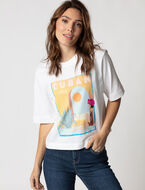 Avec sa coupe décontractée et son imprimé coloré, ce t-shirt ajoute une touche stylée à votre tenue du quotidien. Parfait pour les journées ensoleillées ou à glisser sous une veste pour un effet superposé réussi.