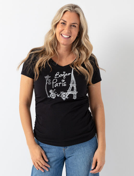 Ce t-shirt est un indispensable de la garde-robe. Sa coupe froncée et son design polyvalent s’associent facilement avec un jean, un short ou une jupe. Pour une sortie décontractée ou une soirée détente, il assure une allure sans effort.
