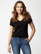 Ce t-shirt uni col en V est génial pour créer des tenues tendance!