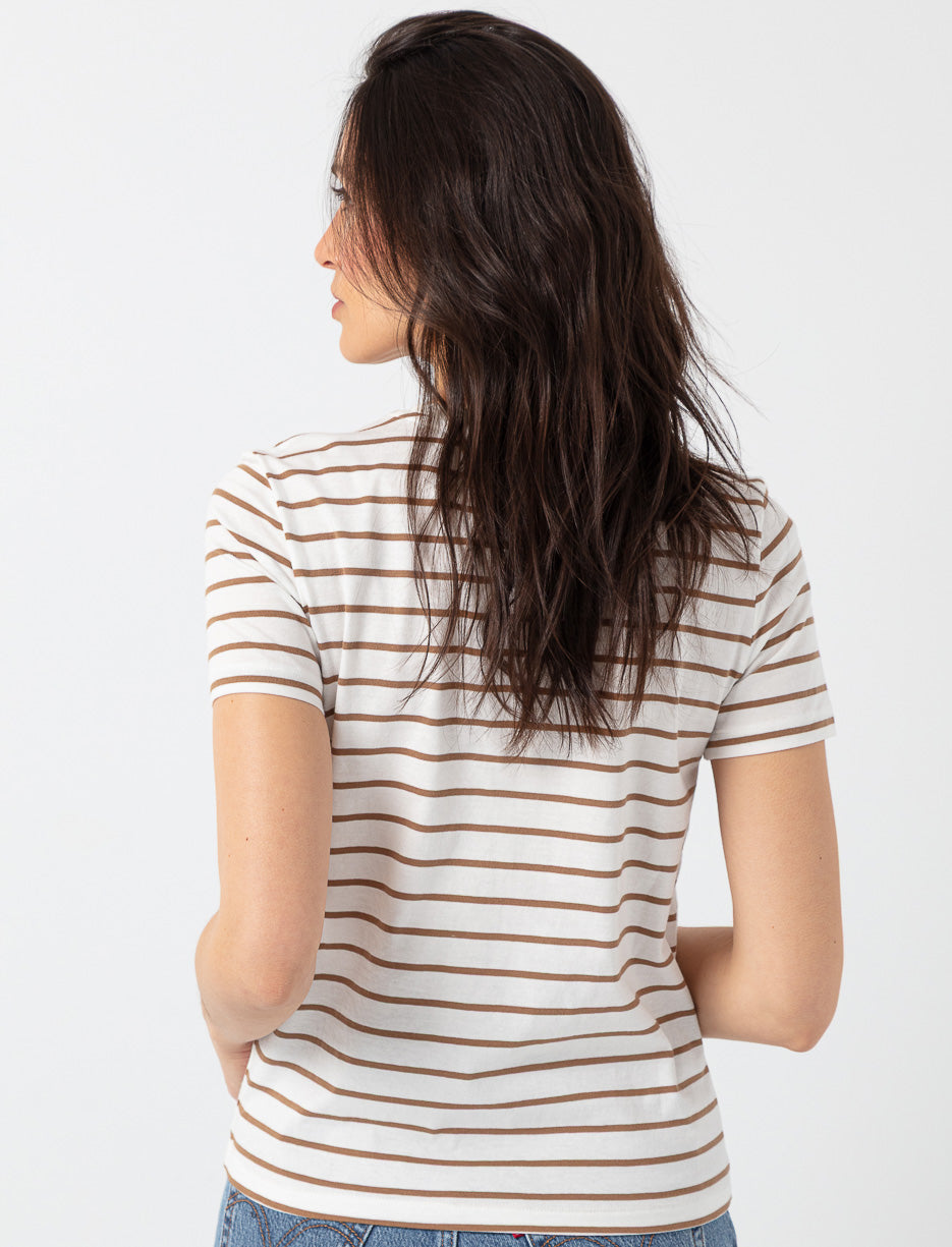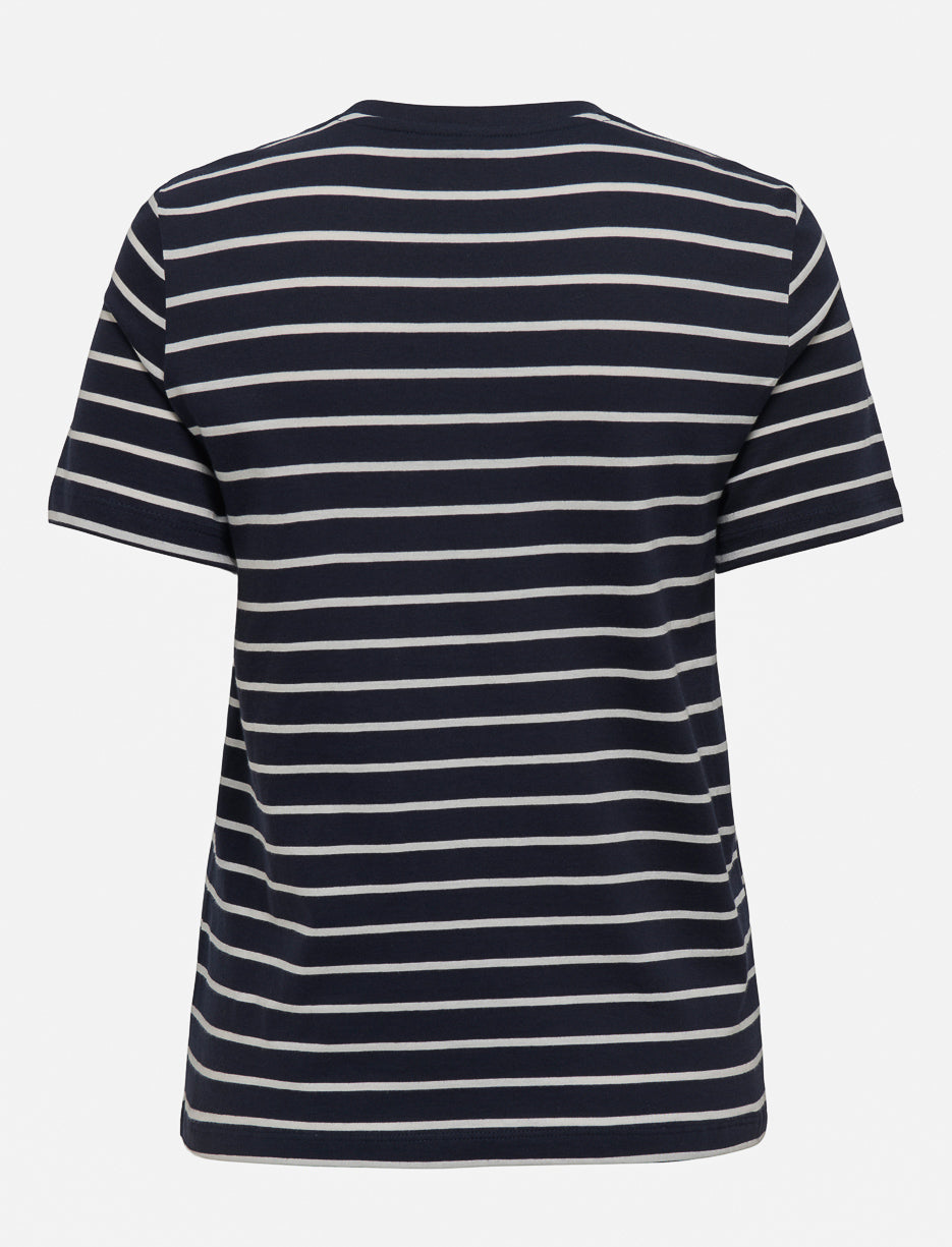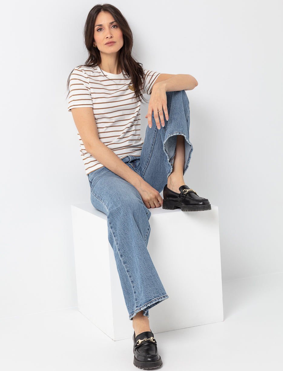 Misez sur la simplicité avec ce t-shirt rayé à écusson brodé. Un essentiel confortable et stylé, parfait pour compléter vos tenues du quotidien sans effort.
