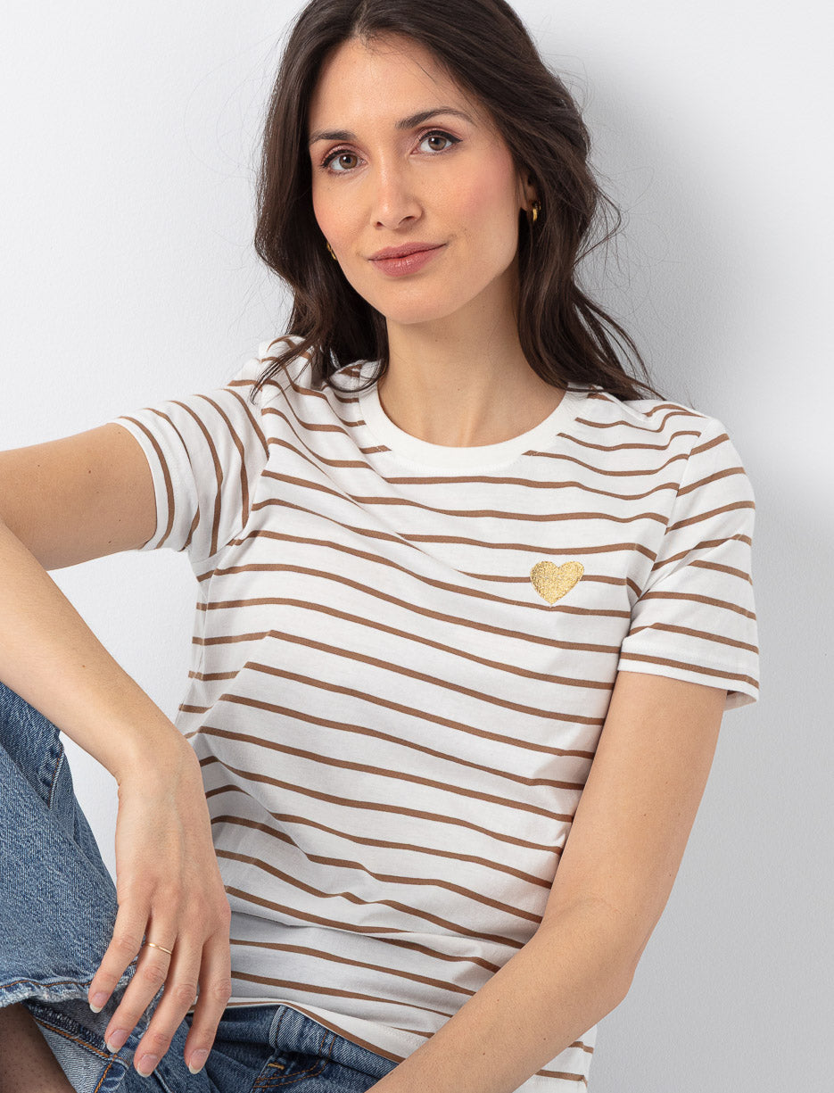T-shirt à rayures et coeur brodé