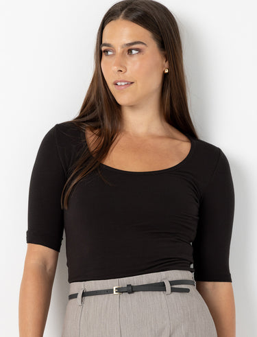 Craquez pour ce t-shirt à col rond et manches mi-longues, une pièce simple et polyvalente qui s’agence facilement à toutes vos tenues.