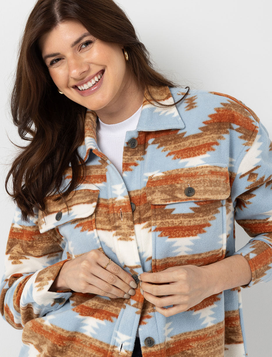 Veste-chemise en polar à motif aztèque
