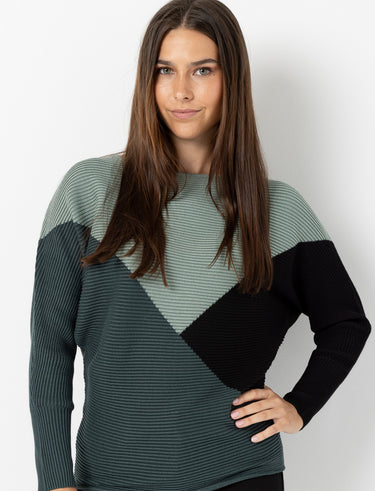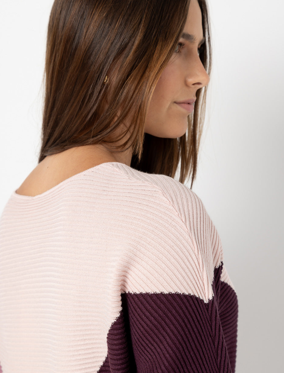 Osez le style graphique avec ce chandail en tricot à blocs de couleur, parfait pour ajouter une touche moderne et audacieuse à votre garde-robe.