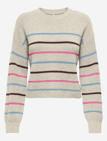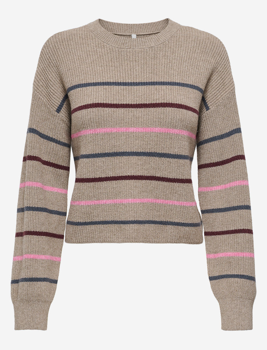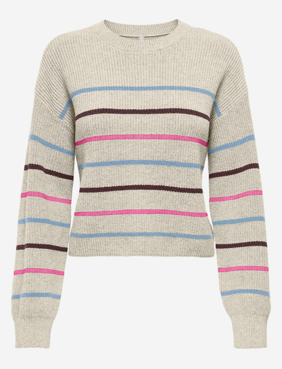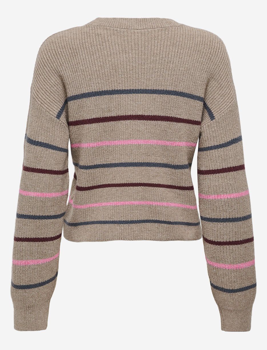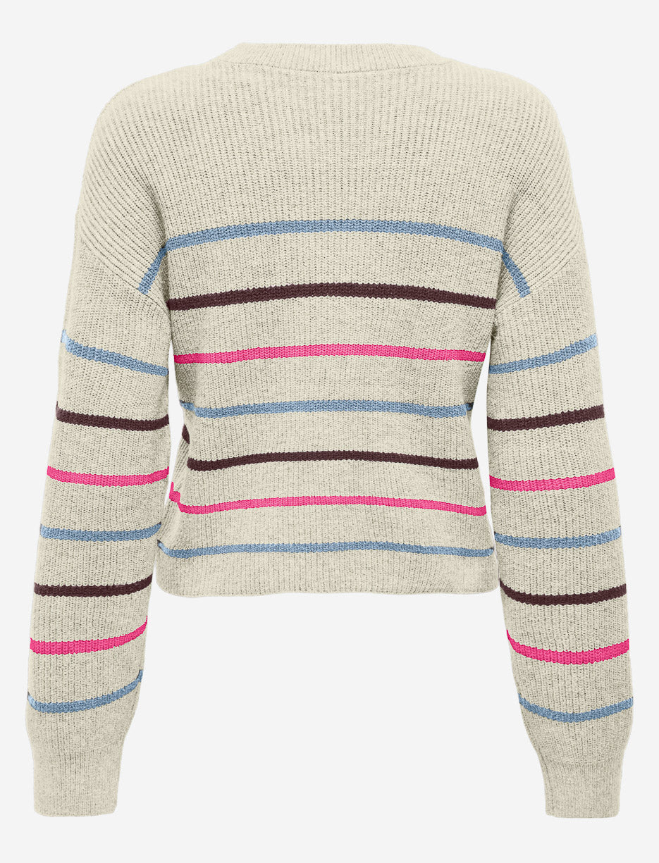 Ce chandail en tricot rayé apporte une touche de couleur et de confort à votre garde-robe. Avec sa texture douce et son allure décontractée, il est parfait pour égayer les journées plus fraîches.
