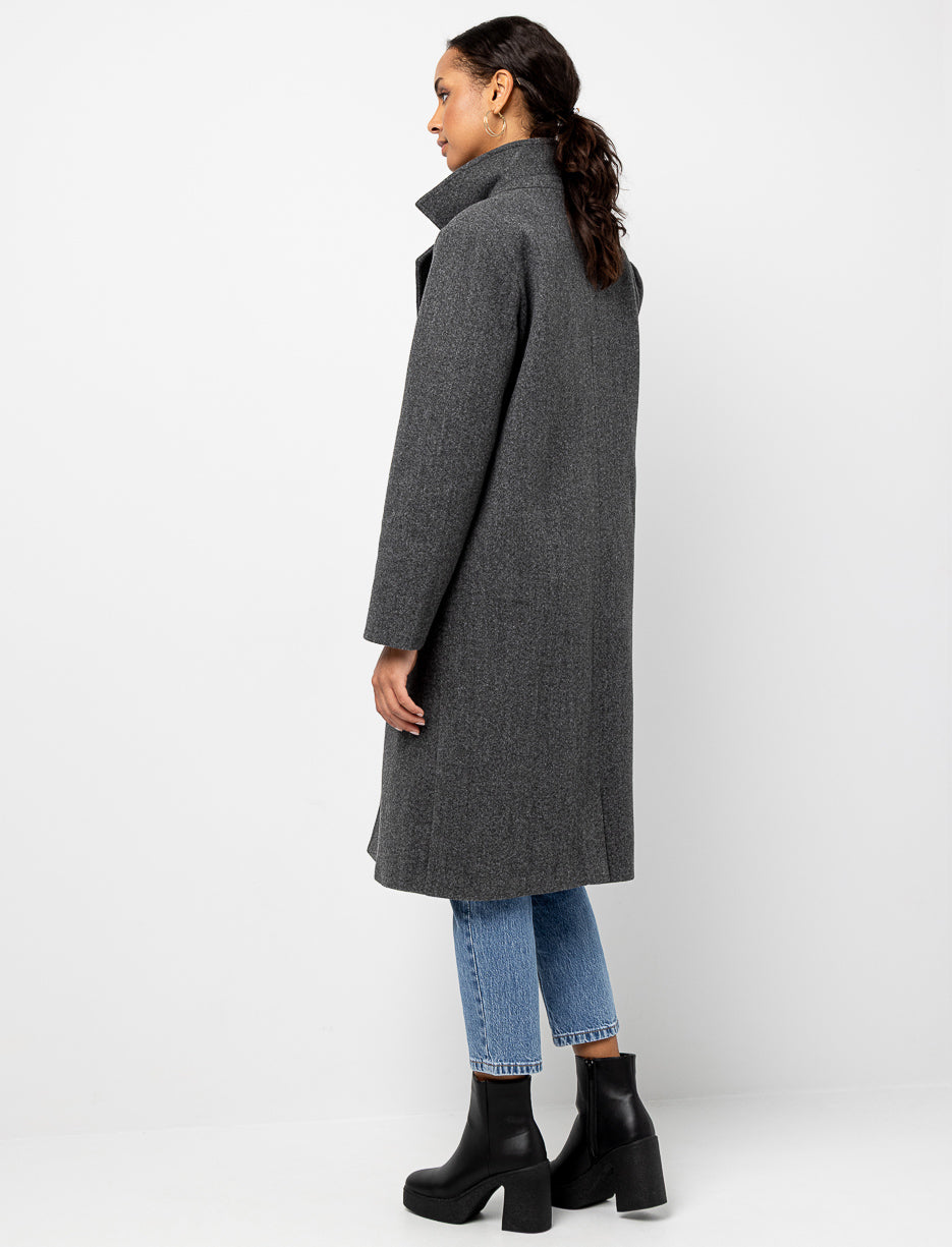 Sa coupe droite, son col tailleur structuré et ses boutons recouverts créent une silhouette soignée et intemporelle. Un indispensable du vestiaire, parfait pour affronter la saison avec distinction.