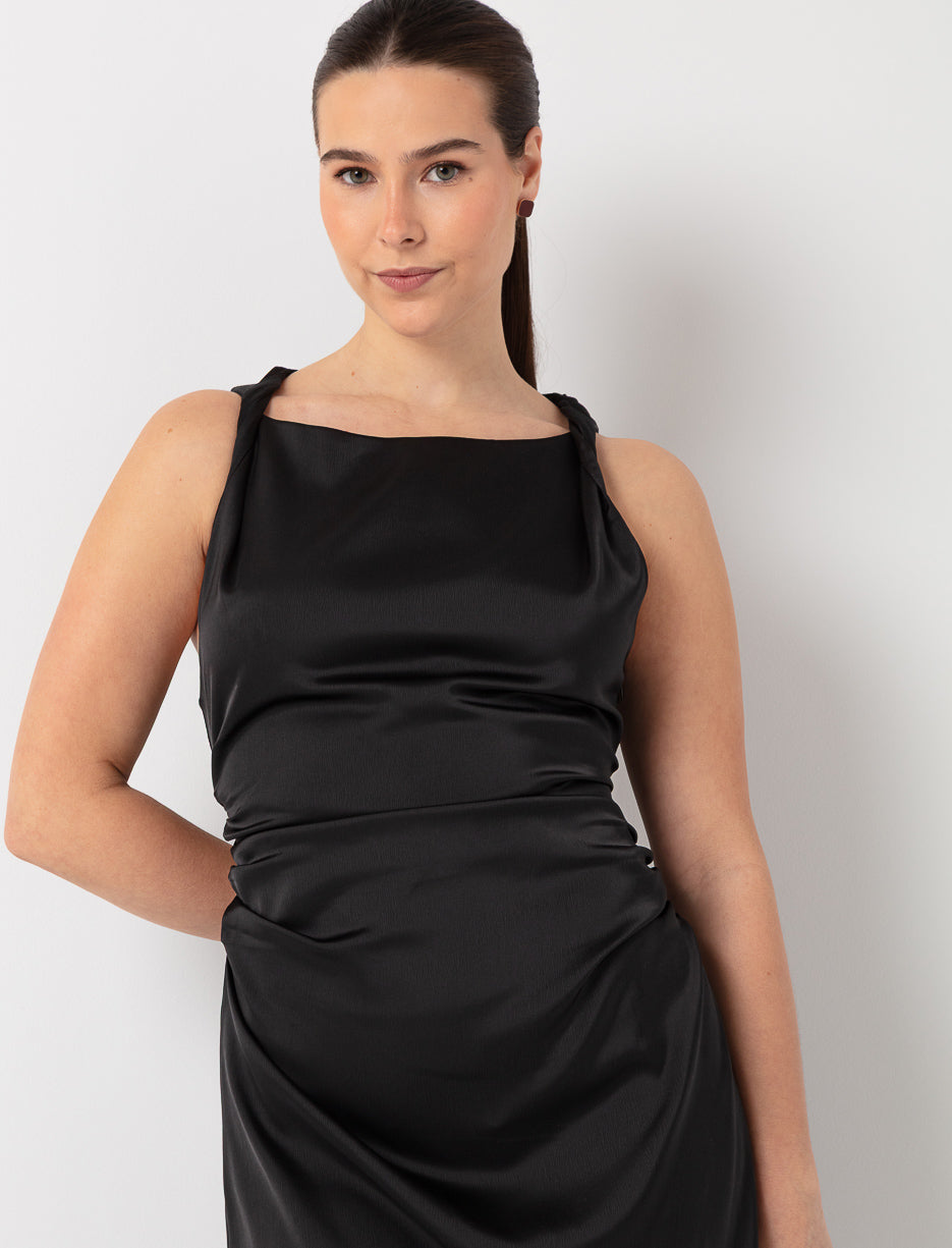Une robe midi satinée qui souligne joliment la taille grâce à ses plis délicats. Fluide, féminine et raffinée, elle s’adapte à toutes vos occasions habillées.