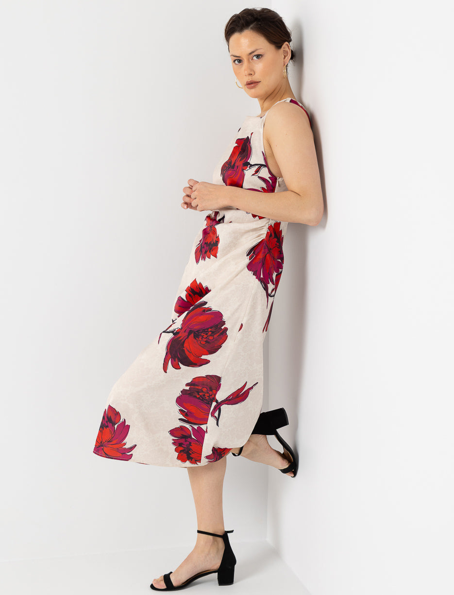 Robe midi fleurie satinée plissée