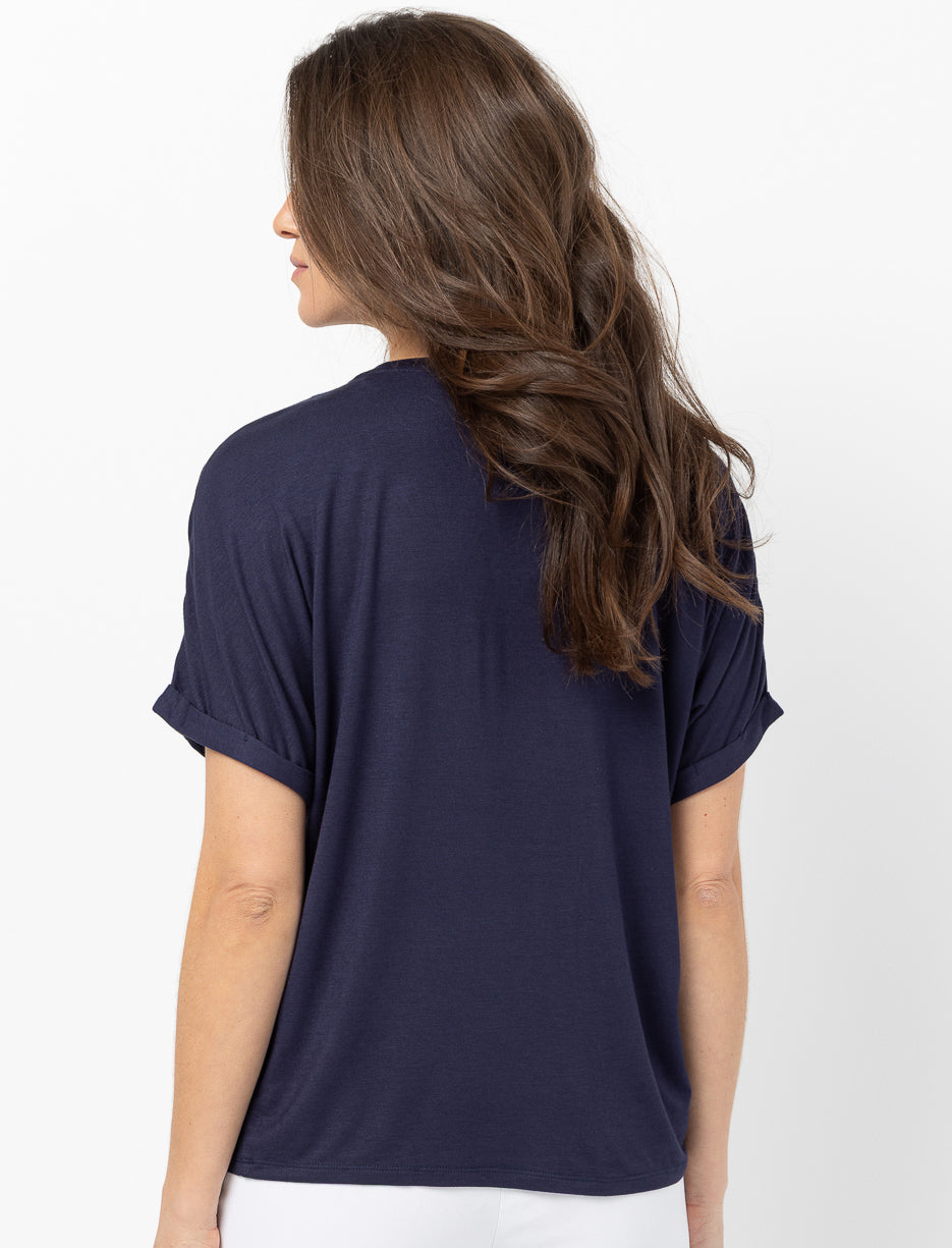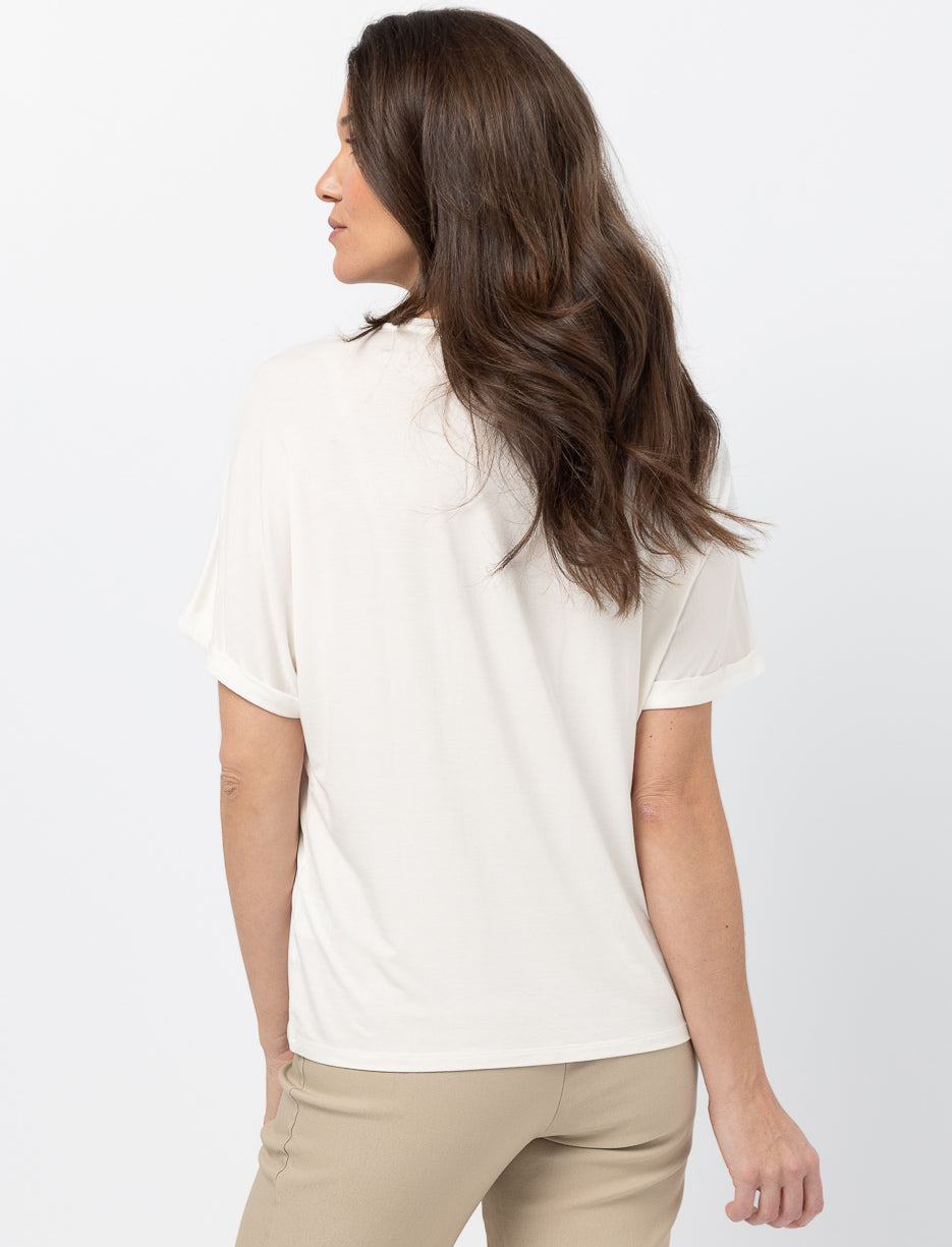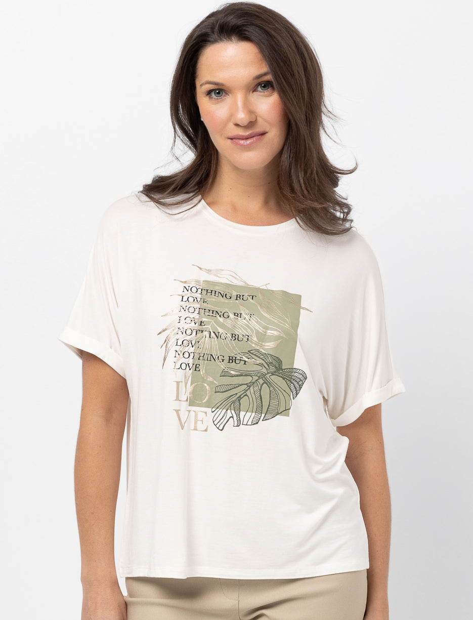 Ce t-shirt à manches dolman mise sur un imprimé doux et une coupe fluide pour apporter une touche artistique à votre look. Une pièce légère et agréable qui s’intègre facilement à vos tenues du quotidien.