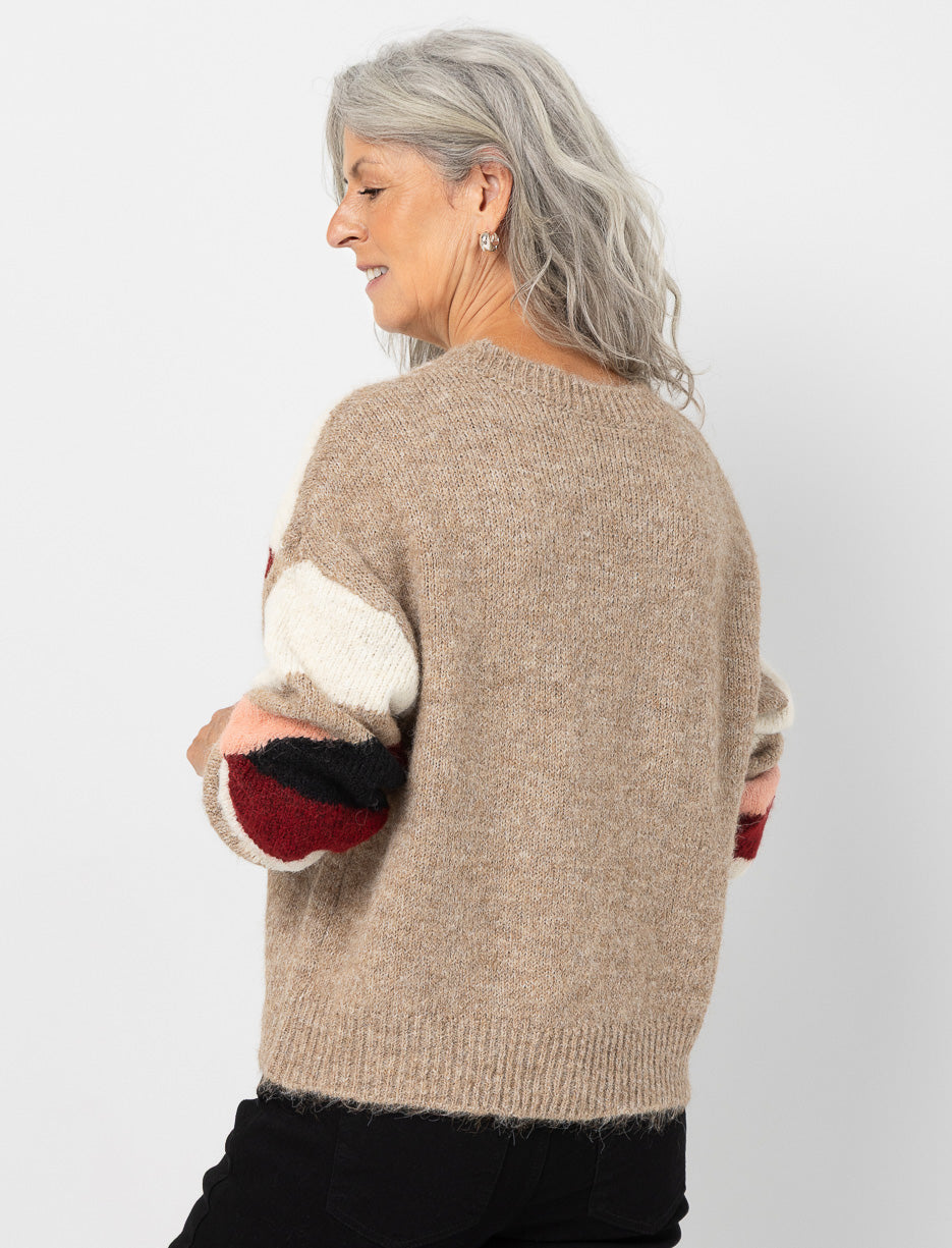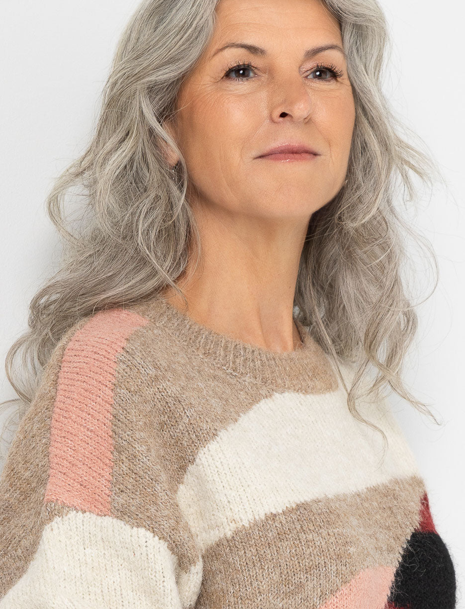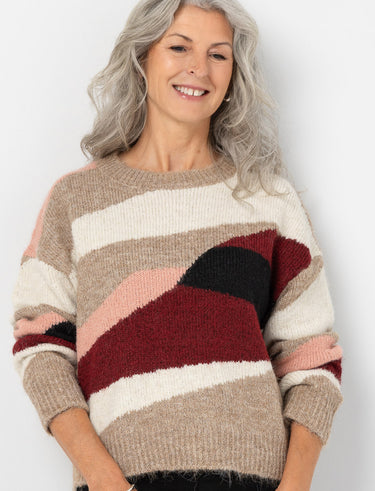 Apportez de la chaleur et du style à vos journées avec ce chandail en tricot orné de motifs abstraits colorés. Un parfait mélange de confort et d’originalité pour vos looks décontractés.
