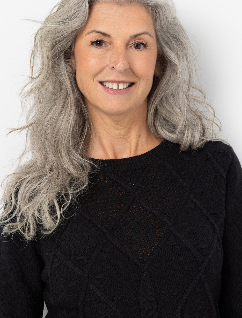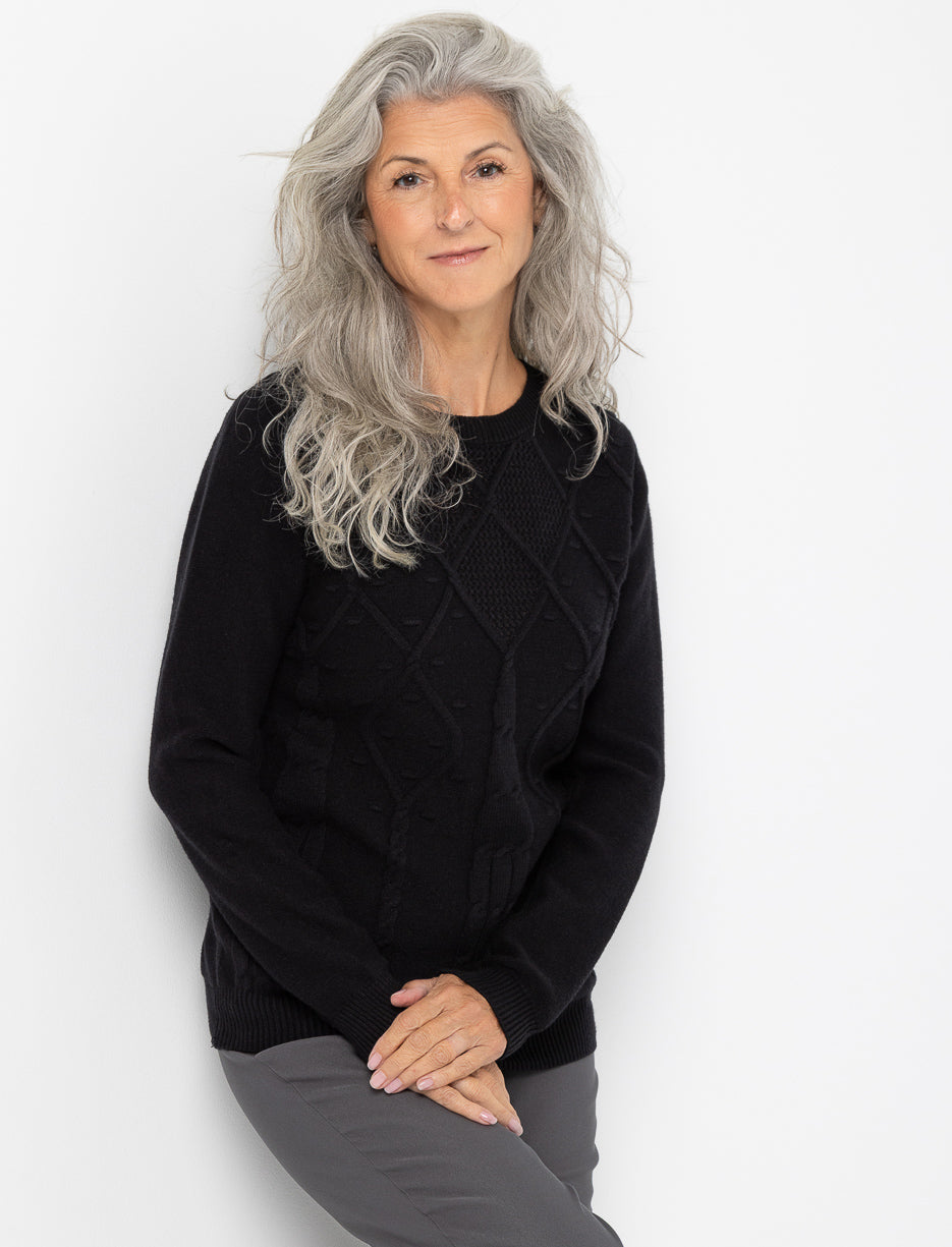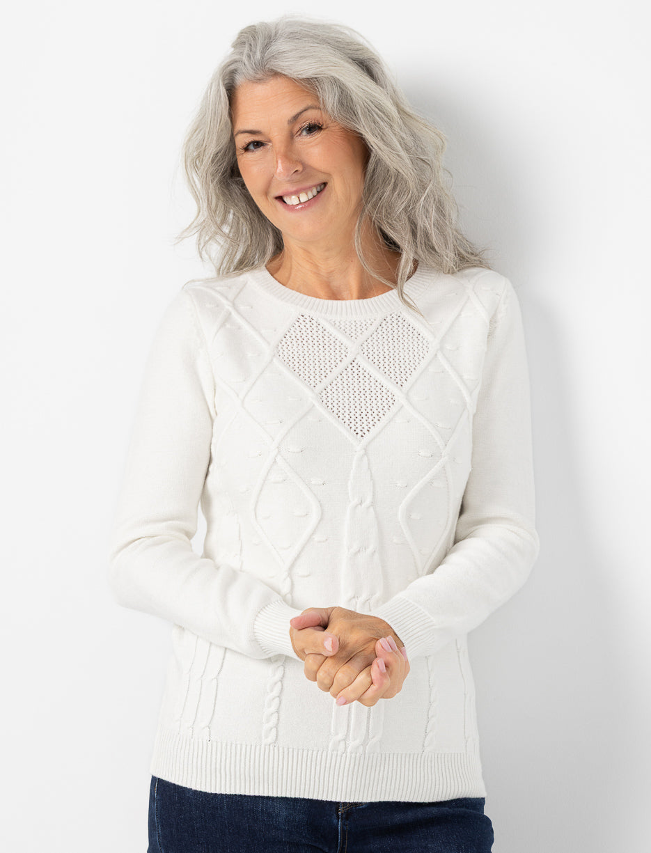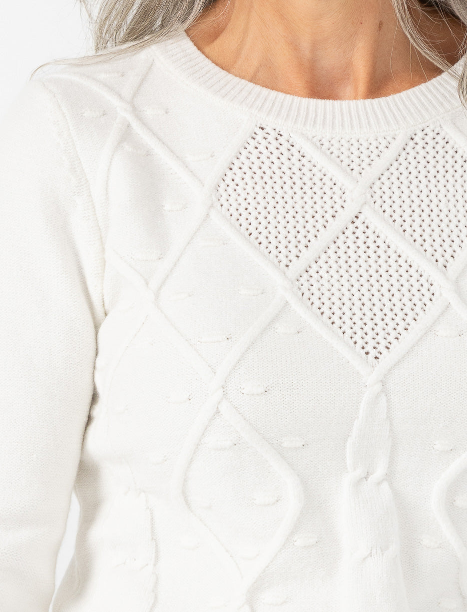 Apportez du relief à vos looks avec ce chandail en tricot texturé. Ses motifs en losanges et ses détails travaillés offrent une allure à la fois élégante et confortable.