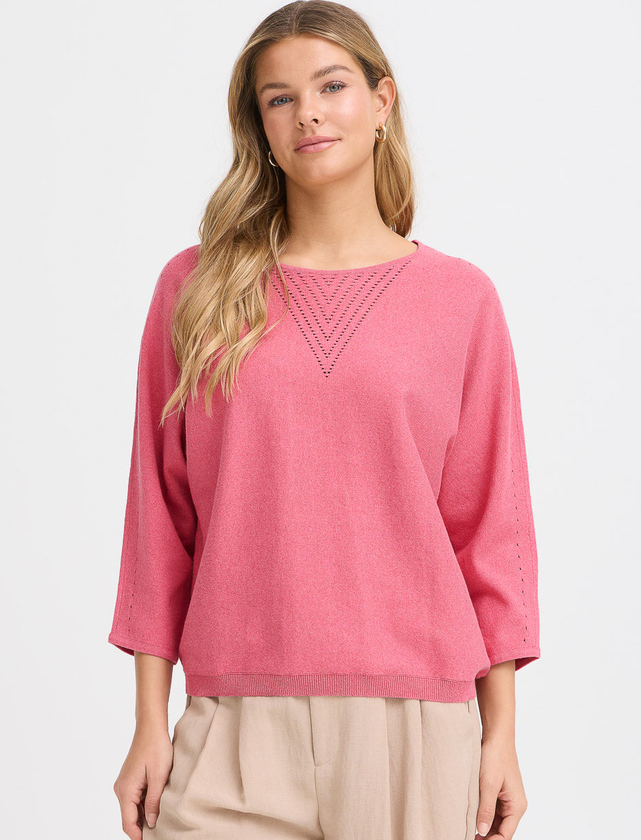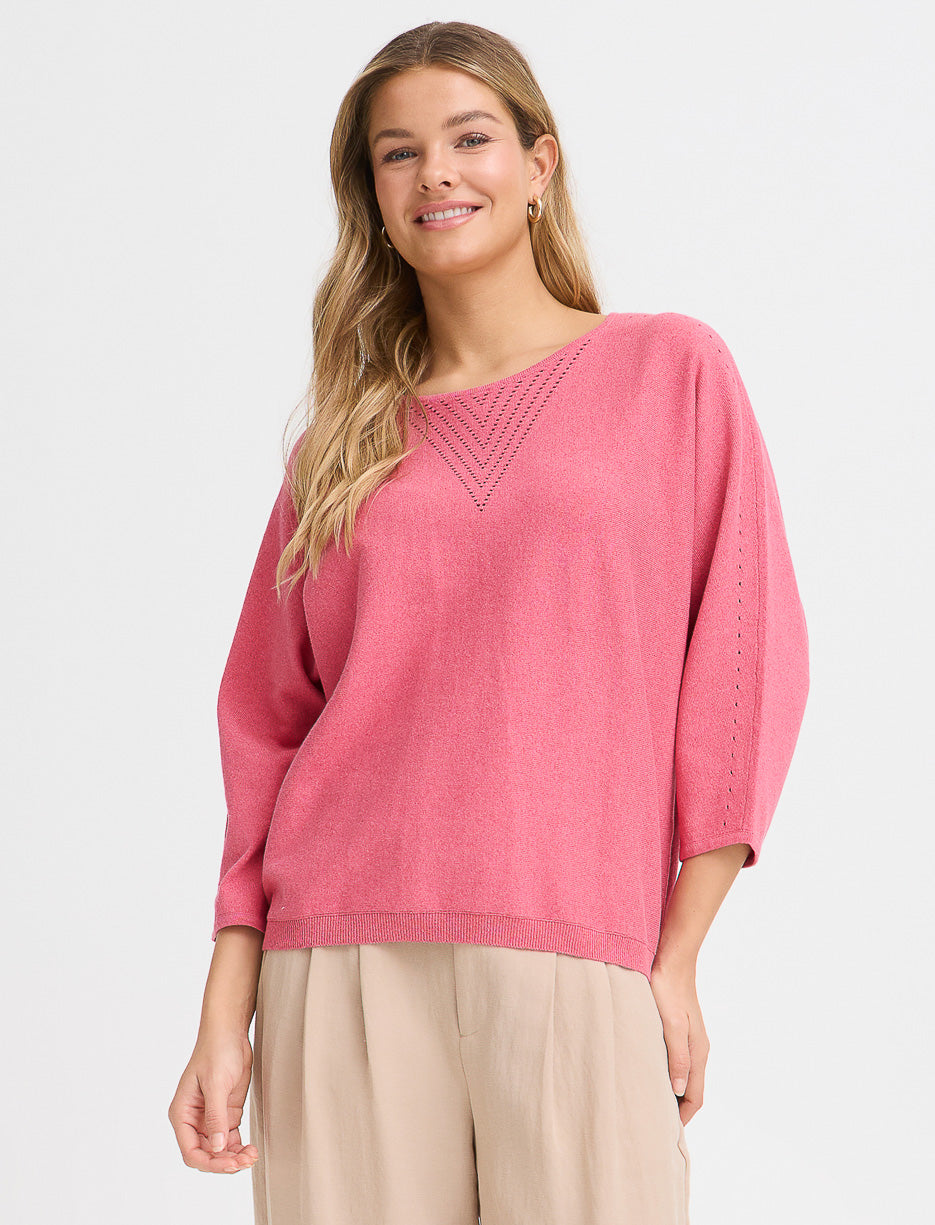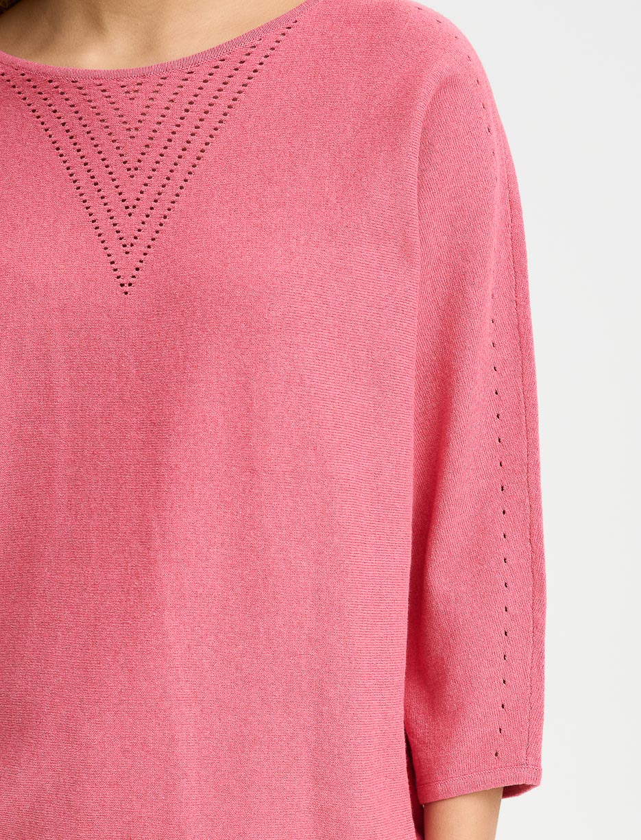 Ce chandail ample en tricot séduit par sa coupe décontractée et ses détails ajourés subtils. Léger et agréable à porter, il apporte une touche moderne à vos tenues, parfait pour les journées où confort et style vont de pair.
